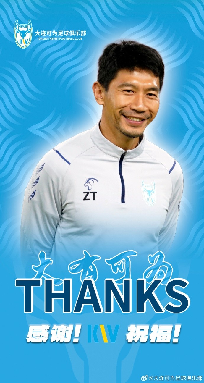 对此,大连可为俱乐部也发表了官方声明,确认朱挺不再担任主教练的职务。俱乐部在公告中对朱挺的努力和贡献表示感谢,回顾了朱挺从职业球员到主教练的转变,双方一同经历了难忘的时光,并在此过程中也取得了不败的佳绩。俱乐部祝愿朱挺在未来的工作和生活中一切顺利。