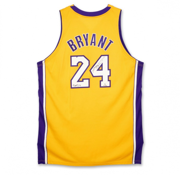 这件球衣不仅仅是记忆的载体,它还承载着无数的热血与拼搏。球衣上不仅有科比的亲笔签名,更加独特的是,球衣上的号码标记着“FIRST 24”和“1/1”,每一个细节都在讲述着他的传奇故事。此外,这件球衣还附有来自Upper Deck的全息防伪标签,彰显其无可替代的珍贵价值。这家公司与科比保持了长达数年的合作,无论是签名还是纪念品的生产,直到2009年这一段美好合作才告一段落。
