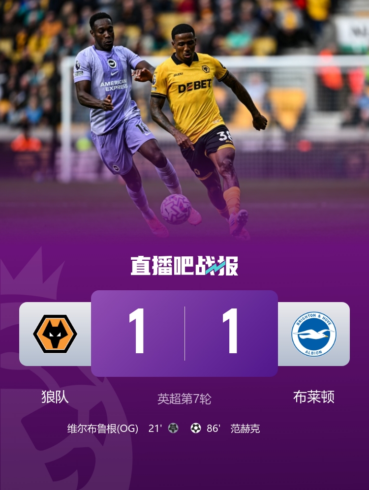 在10月5日的英超联赛上,狼队在莫利诺克斯球场迎战布莱顿,最终结果却如同一场梦游,狼队在自家地盘又一次擦肩而过,依然无缘本赛季的首胜。这场比赛的第一半场,猛一看,似乎狼队有点起色,穆涅西的“神来之笔”造成了维尔布鲁根的乌龙,仿佛预示着美好的开始,狼队暂时1-0领先。谁知,到了下半场,狼队的防线却再次展现出过于“宽松”的风格,范赫克在第86分钟的头球将比分扳平,狼队一脸愤懑,只能沦为战平的主角。
