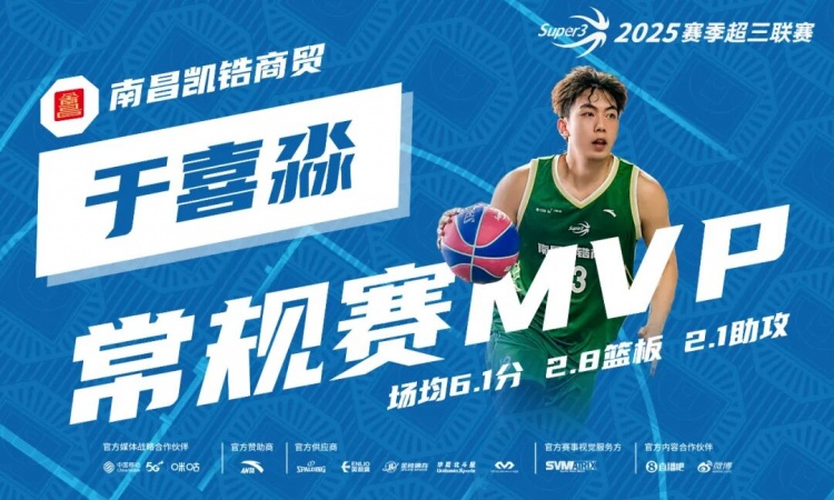2025赛季超三联赛的各项常规赛奖项已经揭晓,南昌凯锆商贸的于喜淼荣获常规赛MVP称号。于喜淼在本赛季出场80次,平均每场拿到6.1分、2.8个篮板及2.1次助攻,帮助南昌凯锆商贸夺得四个大区赛分站冠军。