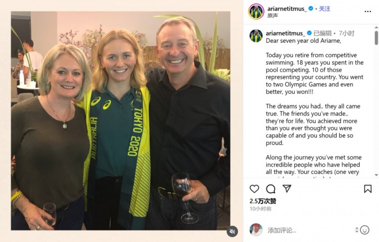 在10月16日,25岁的澳大利亚游泳传奇人物蒂特姆斯宣布了她的退役决定。她在社交媒体上表达了对自己泳坛生涯的感慨与感谢,回顾了自己在水中奋斗的那些年。她提到,从7岁开始踏入竞技游泳的她,经历了18年的拼搏,其中有10年时间代表国家参赛,参加了两届奥运会并取得了辉煌的胜利。
