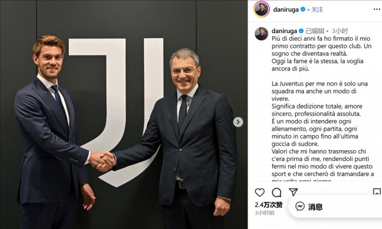 在10月21日,鲁加尼与尤文图斯俱乐部续约后,通过社交媒体分享了他的感想。他回忆起十多年前与俱乐部签下第一份合同的激动时刻,指出那是实现梦想的一刻。如今,这份渴望依然在他心中燃烧,甚至愈发炽热。