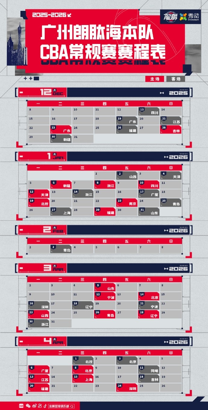 特别值得注意的是,广州龙狮主场的赛事套票价格以及预约专属优惠的福利也一并亮相,球迷们可以借此机会,畅享赛季带来的激情与欢乐。然而,世事难料,由于主场赛事场馆将举行政府大型活动,部分比赛的安排不可避免地进行了调整。经CBA公司的审核与同意,最新赛程做出了相应的修改。