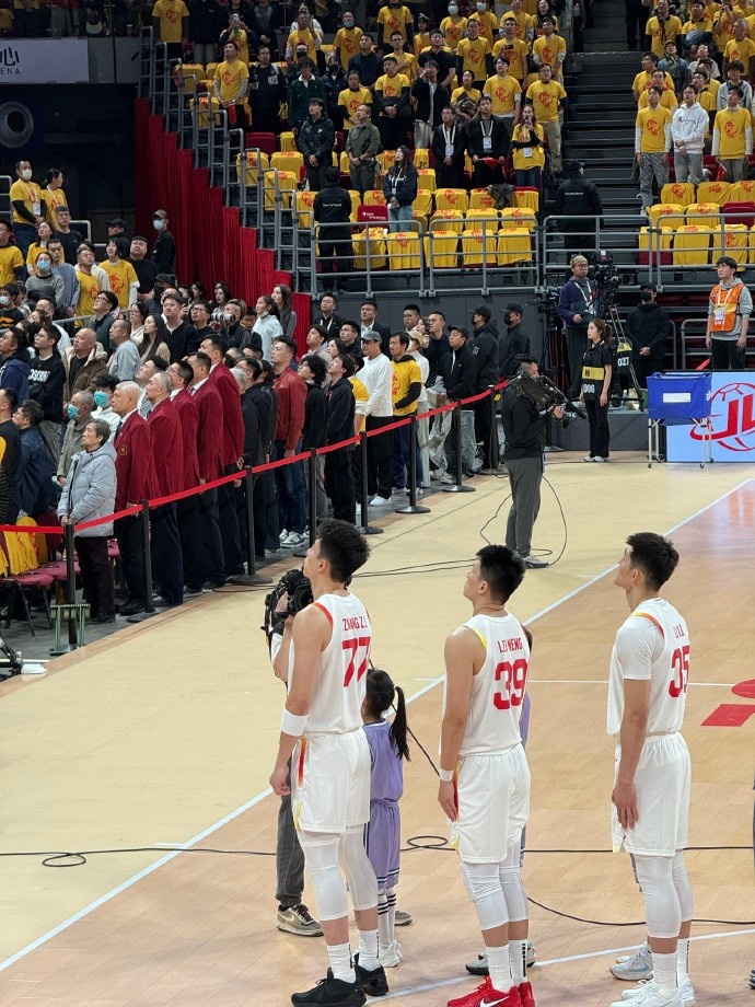 六年的岁月,中国男篮再次踏上了熟悉的赛场。赛前我拍下的那一瞬,远处勉力站立的是蒋兴权、匡鲁彬、巩晓彬、胡卫东与王治郅等中国篮球的传奇人物。五棵松的球迷席上人声鼎沸,这些前辈在场边鼓励着队员们,既是动力的来源,也是无法忽视的压力。