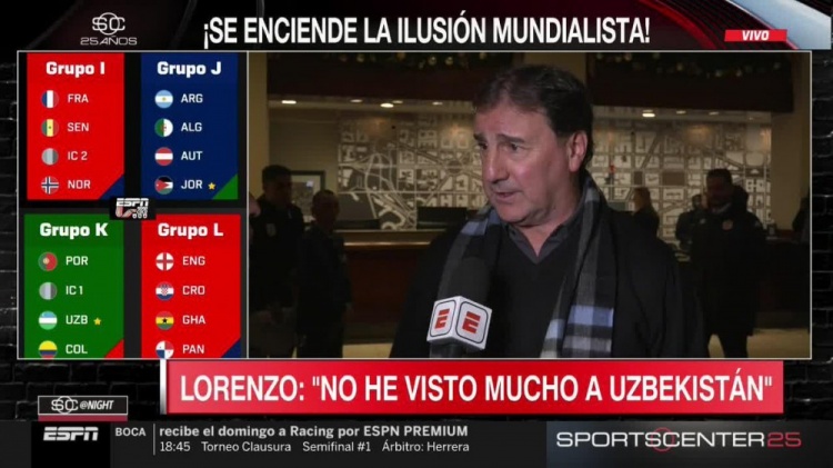 12月6日讯,世界杯小组抽签的结果已经揭晓,哥伦比亚被分在了K组,与乌兹别克斯坦、葡萄牙以及一支洲际附加赛球队同组。哥伦比亚的主教练洛伦佐在接受媒体采访时,对南美球队在本届世界杯上的表现进行了展望。