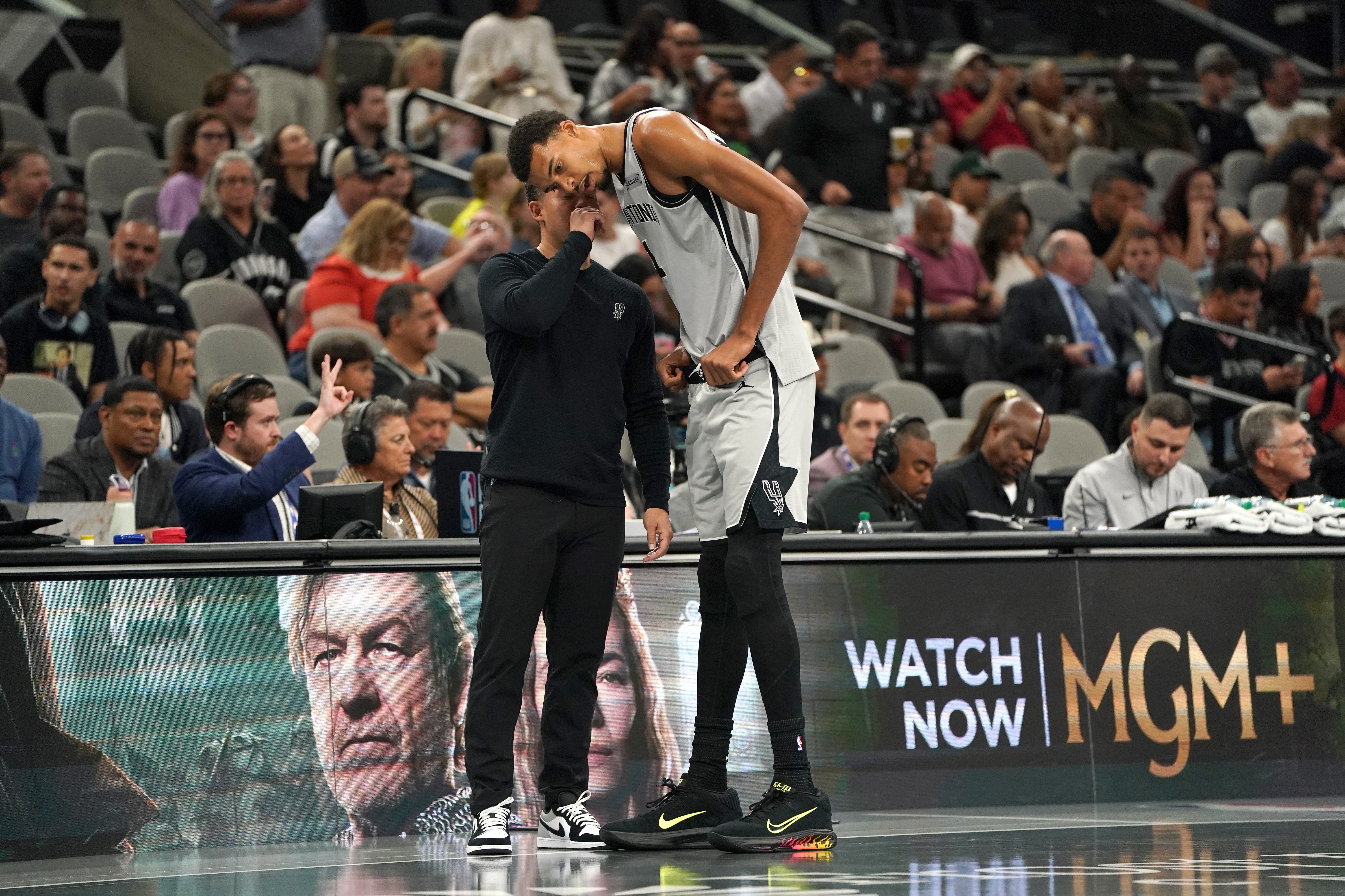 马刺的教练米老鼠则顺势做出了换人决定,文和尚暂时被换下。此后,雷霆队抓住机会,带着一波攻势进一步扩展领先优势,在一度领先16分的情况下,马刺战局岌岌可危。然而,就在比赛的关键时刻,文和尚再次登场,局势悄然变化。切特刚露面就被迅速替换下场,哈腾无论是在高度还是灵活性上都无法有效防守,不断被马刺队的进攻撕扯,比赛的走势再度被拉回均势。
