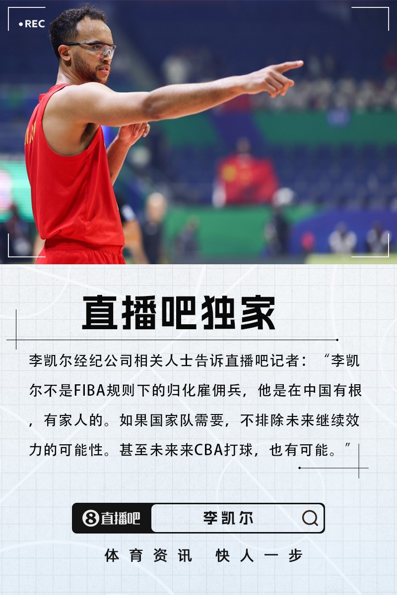 李凯尔的经纪公司对此事进行了独家回应,明确表示:“李凯尔并不是FIBA规则下的归化雇佣兵,他在中国有扎实的根基,并且有家人在这里。如果国家队需要的话,李凯尔不排除未来继续为国效力的可能性。他甚至可能在将来加盟CBA联赛。”
