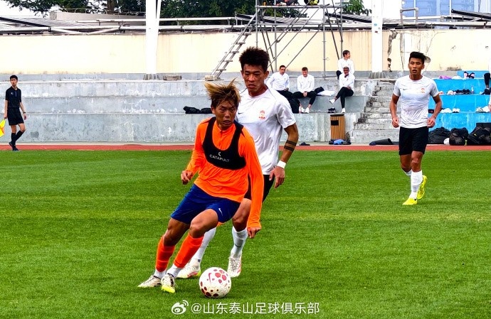 今日午后,山东泰山队在海口进行冬季训练期间,与青岛西海岸队进行了一场热身赛。此役上半场与下半场各为35分钟。泰山队首发阵容由刘骐玮、王彤、赵剑非、杨瑞琦、吴兴涵、梅帅军、尹嘉熙、邓淳泽、陈蒲、路俊伟和买乌郎组成。