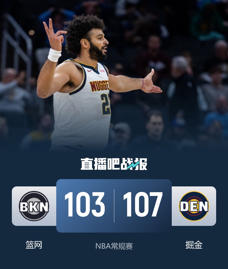 经过短暂休息后,掘金在进攻端出现停滞,而小波特则通过连续的三分球帮助球队蚕食分差。到第三节结束时,掘金仍保有3分的微弱优势。进入决胜的末节,掘金再次发力,巩固了领先地位。尽管篮网始终未放弃,希望追平分差,但在关键时刻,穆雷的单打连续得手,最终瓦兰丘纳斯也通过罚球锁定胜局。掘金以107-103战胜篮网,使对手的连败记录增加到七场。