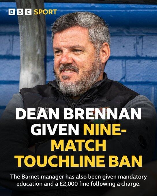 2月13日讯 BBC的报道真是让人目瞪口呆,英乙球队巴尼特的主教练迪恩·布伦南因为对一位女性裁判的猖狂辱骂,竟然被禁赛九场,简直让人想问:“你到底在想什么?”这位“高瞻远瞩”的教练在9月6日主场输给什鲁斯伯里的比赛中,因为不满裁判的判罚,被罚下场,结果在场边的嘴炮表演引来了英足总的怒火。